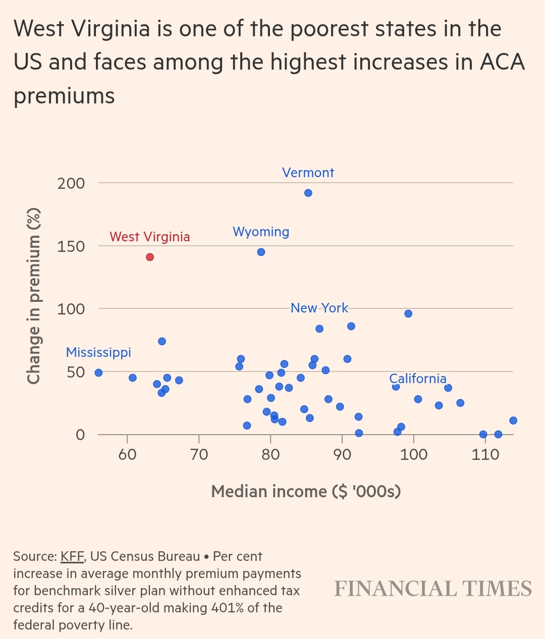 I believe it has to do with age of cohorts (in those states) and being close to the subsidy cliff for income level.