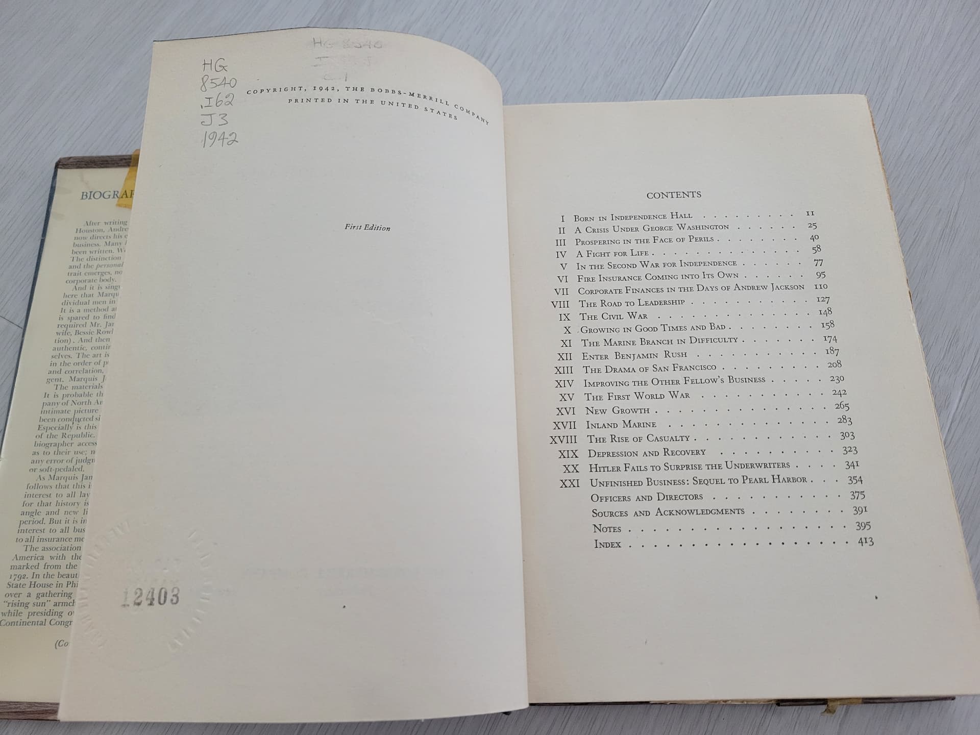 I acquired this WW2 era book about INA, the oldest insurance company in the US. My copy is over 80 years old: