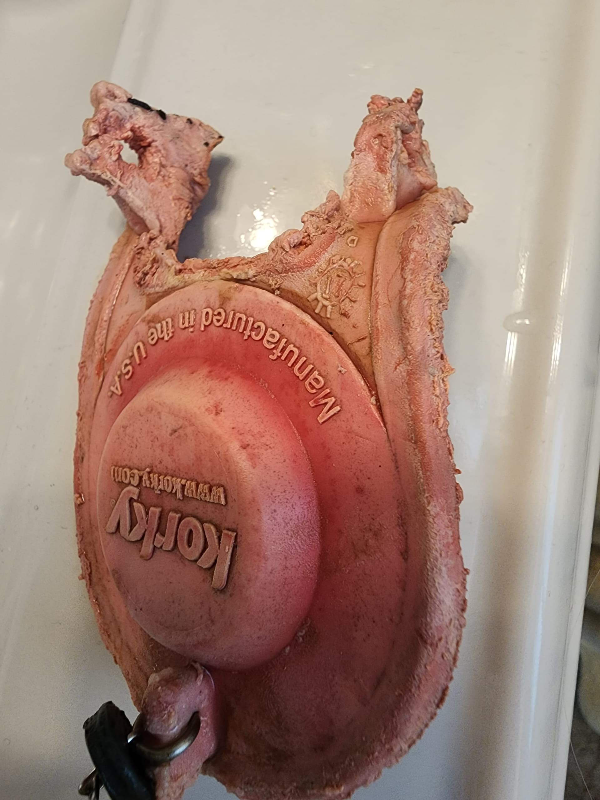 WTF happened to this flapper though. Not only did both connections completely wear through, it looks like the dog chewed on it for a while.