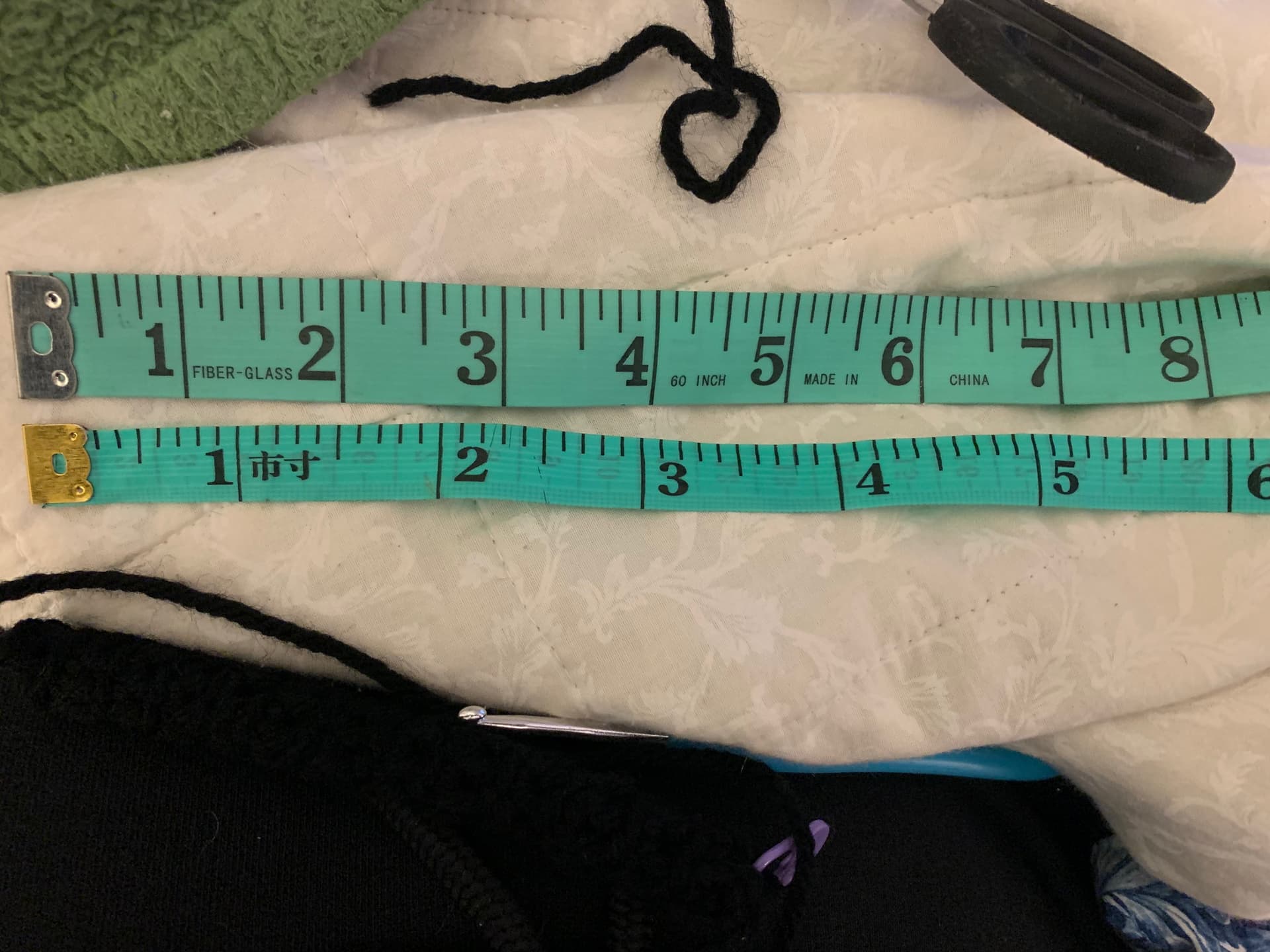 I bought a cheap crochet hook kit for my son a while ago, he didn’t like crocheting, so it’s been sitting around. I am making some silly crochet things tonight and grabbed the kit for the hook, as my good supplies are stored away in the basement. There is also a measuring tape in the kit. The pattern I am following says to make something until it’s 5 inches long. I kept thinking that it looked way longer than 5 inches, but it supposedly wasn’t according to the tape.