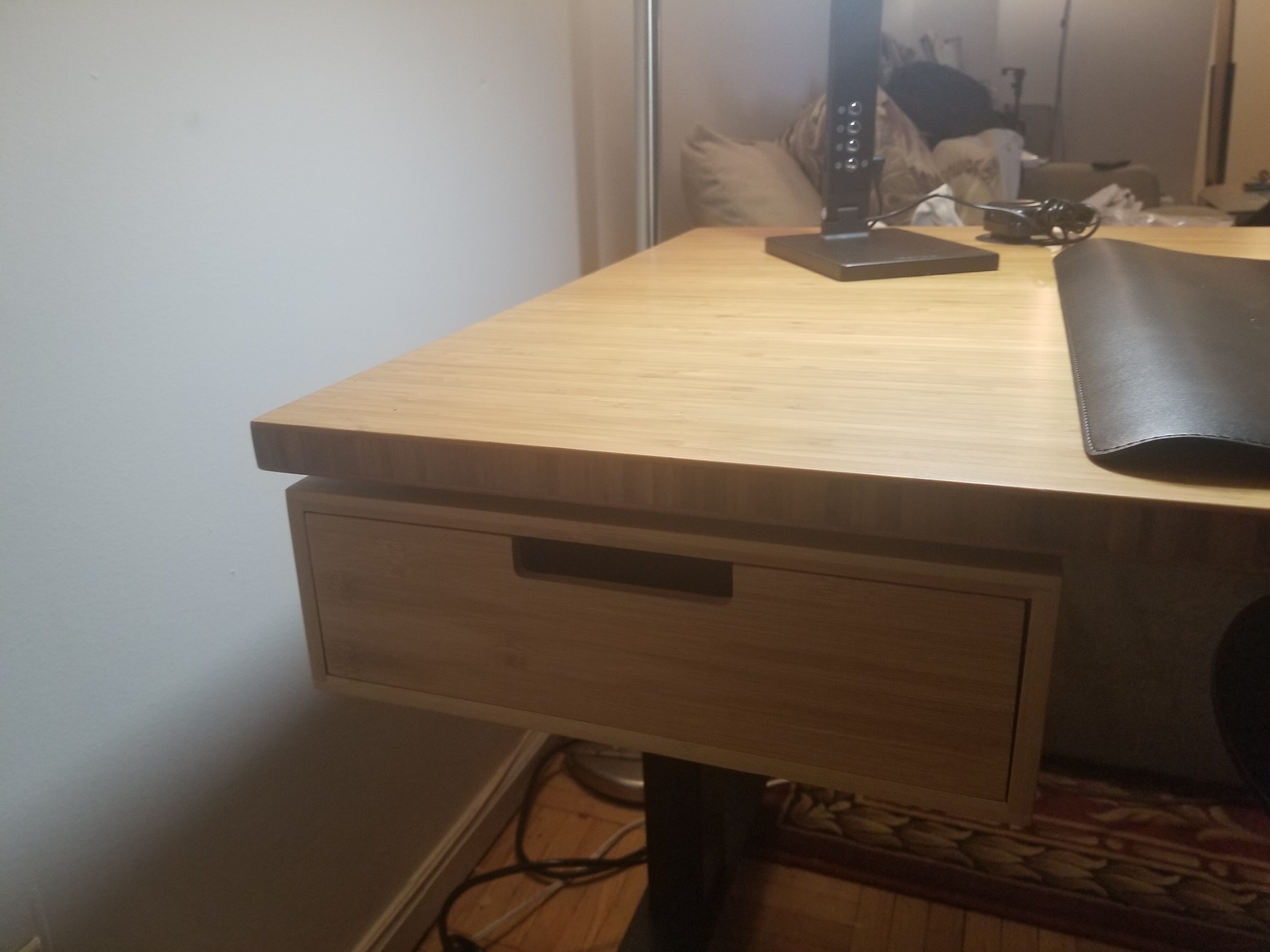i’m not entirely sold on the keyboard tray. i think it gets in the way of my legs folding. he said he could remove it, but i left it for now. he told me how to remove it if i need to.