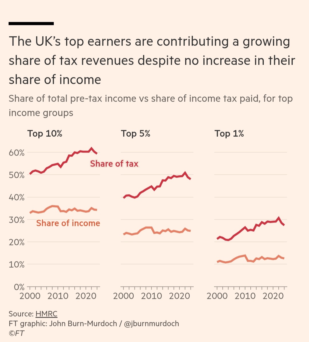 The squeeze of the top 10% of income earners in the UK has been so extreme over the last 20Y that the UK now has an even more redistributive tax structure vs Scandinavian countries.
