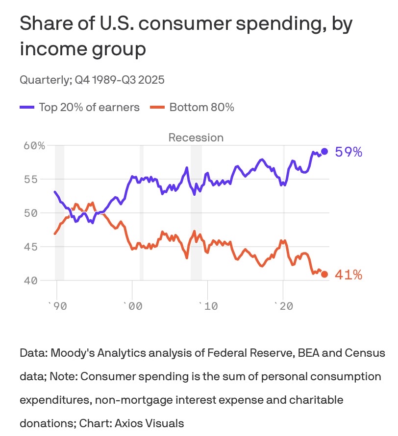 A variation (which I donāt have access to yet) of this slide was one of many that were discussed yesterday at the investment seminar I attended. Their slide showed that the top 20% of income earners in the US provide 63% of total spending.