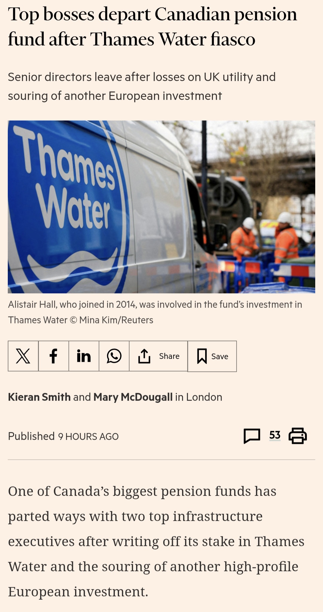 Going to a meeting this afternoon with the other former Canadian investment manager who owned a piece of Thames Water and TW may come up (it has many times previously!).