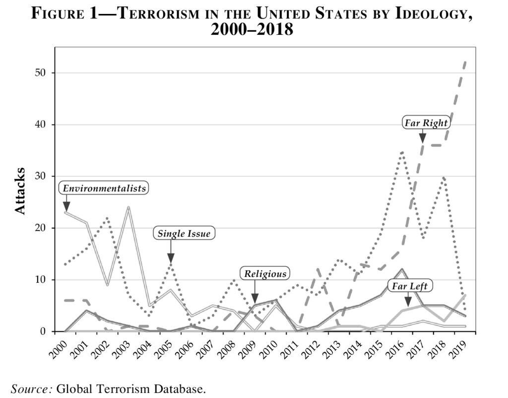 For example, you could consider attacks on abortion clinics & workers to be “single issue” but attacks on pro-lifers to be “far left”… or the other way around depending on what you wanted the graph to look like.