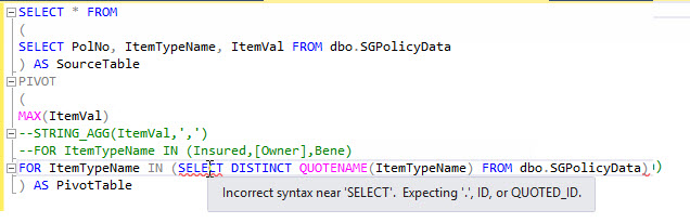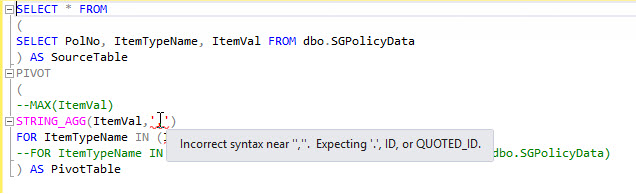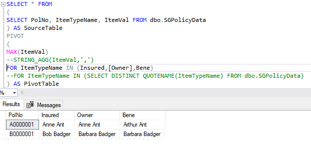 ETA STRING_AGG seems like it would work, but I get a syntax error. I used STRING_AGG in a non-pivot query to see if I could get it to work, and it does. Same syntax throws an error in PIVOT. Hmm.