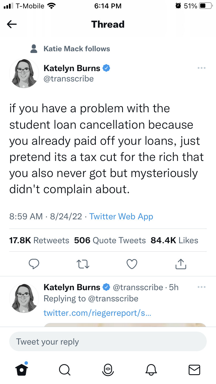 So some set of rules that doesn’t forgive the doctor’s student loans but does for the barista who never finished college but racked up a ton of student loans trying. And a private lender / investor on the hook for the discharges loan.