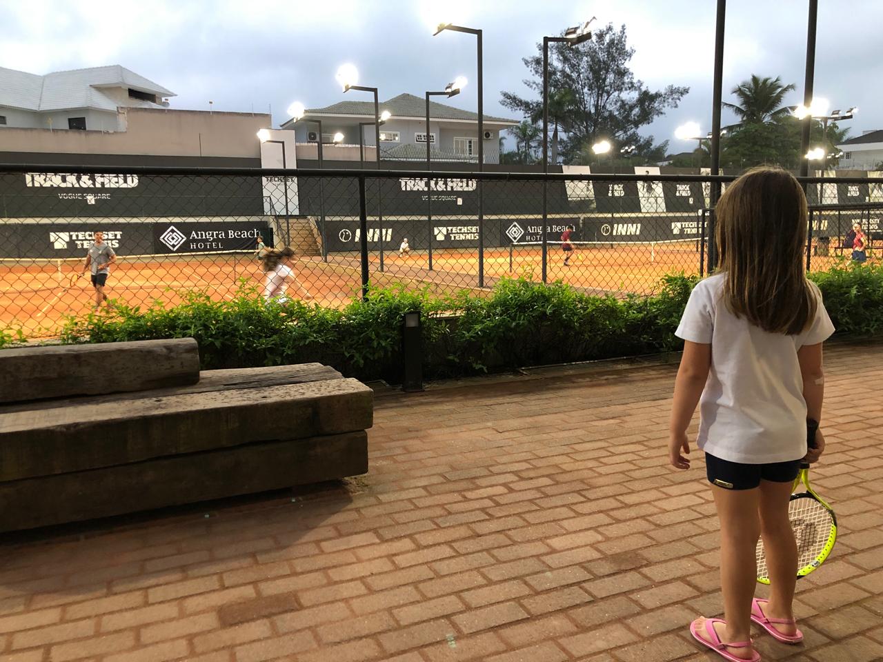 The little one finished her first tennis lesson.
