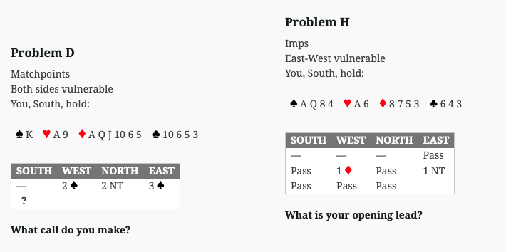 H: 6C. Leading a spade could give up a trick. Diamonds is opponents suit. It’s likely partner has 4 more more hearts, so we could create a trick there, but I don’t love leading the Ace or leading away from the Ace. Maybe the plan is to lead the Ace of hearts and then follow with the 6 if the read is favorable.
