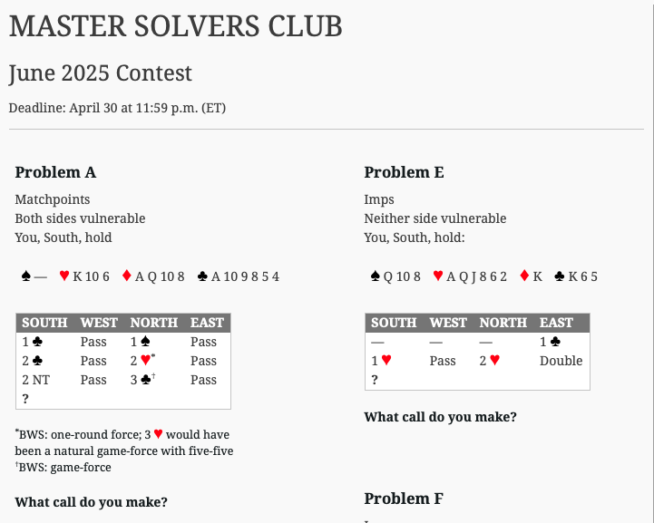 3S 90 2NT 60 P 50 1NT 70 4S 80 P 90 P 80 D10 60