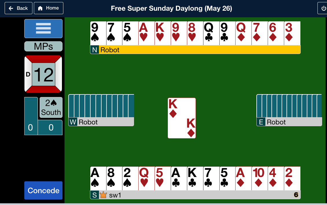 Not that it matters, but you could (if you cared; I don’t need to know) find out how much I might have played by going to your result. Going to individual boards, and choosing “show other tables”. If you do that on board 1 and I played board 1, you’ll see results for everyone who played board 1.