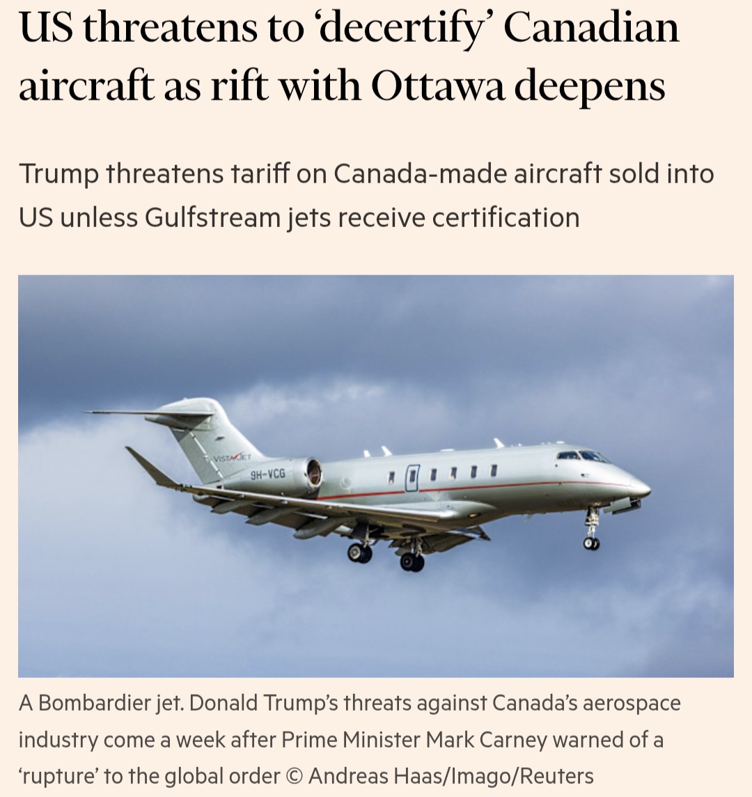 Unfortunately for him, Carney has made it entirely clear to Canadians that he’s not going to bow to individual pressures because Trump’s not trustworthy. Which means Carney can go ahead and make deals or not, because even if there’s fallout from Trump, Canadians will just appreciate it’s the cost of avoiding the US now. Carney doesn’t have to cowtow to Trump even if he’s going to destroy the canadian aerospace manufacting segment.
