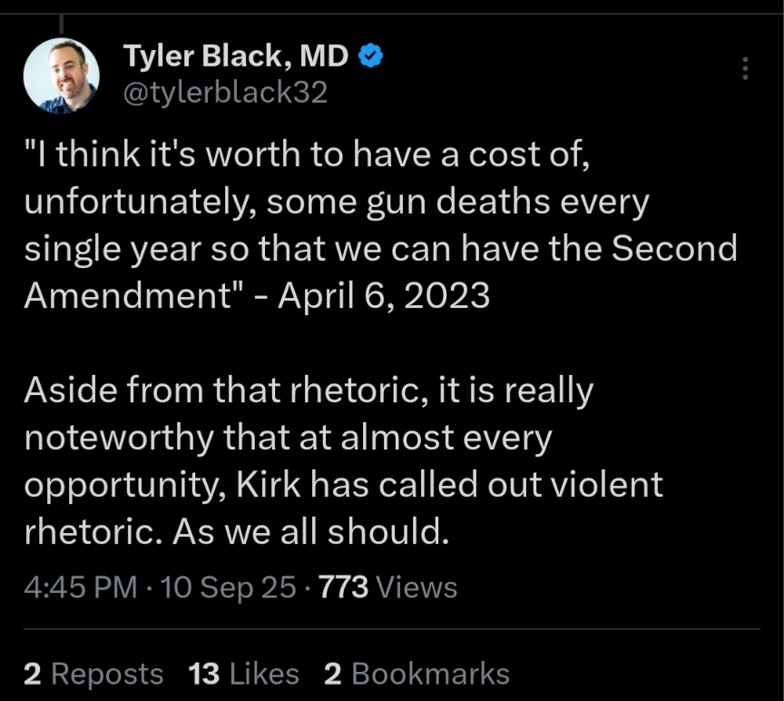 It sucks that he was shot. But that’s the price we pay for having Second Amendment rights, isn’t it?