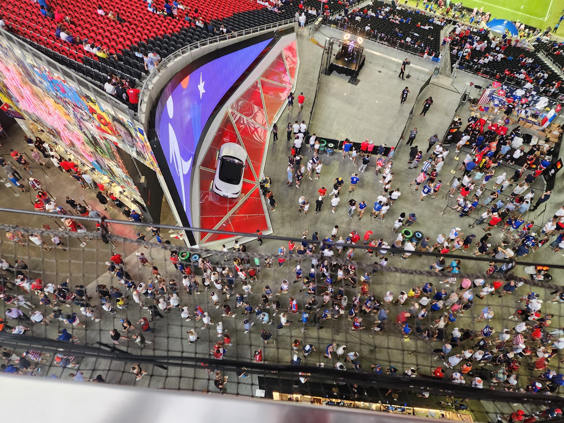 The crowd for USA Panama is much lighter than what it was for ARG here. However the merch line at the main stand is insane. Merch stand is towards the top right here. Line snakes to the left through the crowd and out of sight