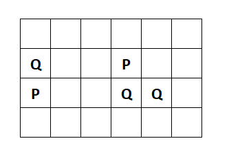 Divide the rectangle along the lines into two identically shaped 12-block pieces so that one piece contains all the P’s and the other piece contains all the Q’s.