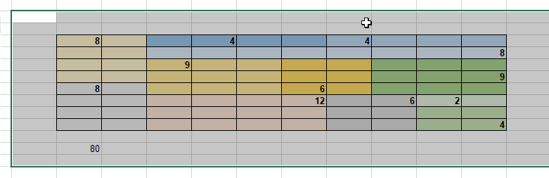 This leaves the 2-5-7 for the SW side–with 7 in the middle–and 3-5-6 for the S side with 6 in the middle.
