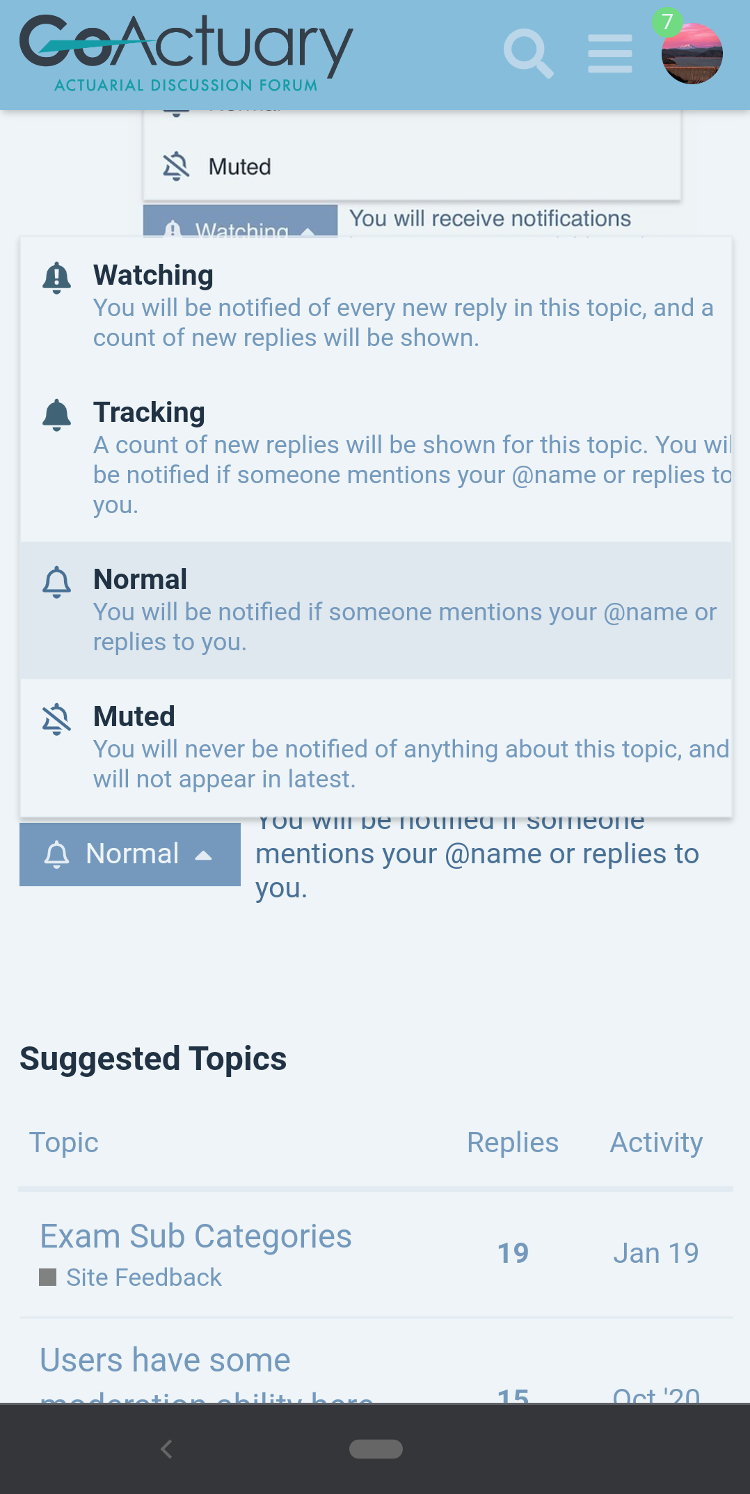 With that said, I do wonder if the underlying software does make a distinction between Watching/Tracking and Normal for threads-you-create. I do see that in this instance, Muting being disabled.