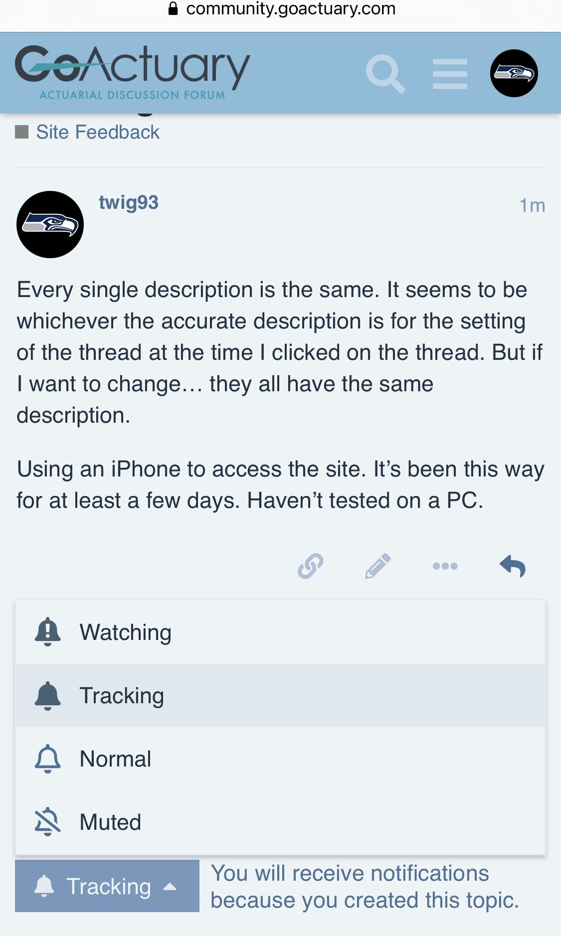 @twig93, after selecting a particular level of tracking, have you tried to exit the thread and go back in to see what text appears?