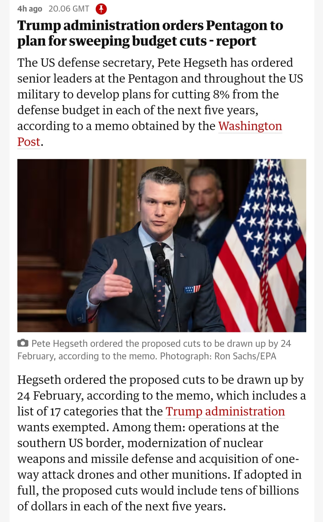 Not directly DOGE related but Trump has now told DoD to cut 8% of its budget every year for the next 5 years.
