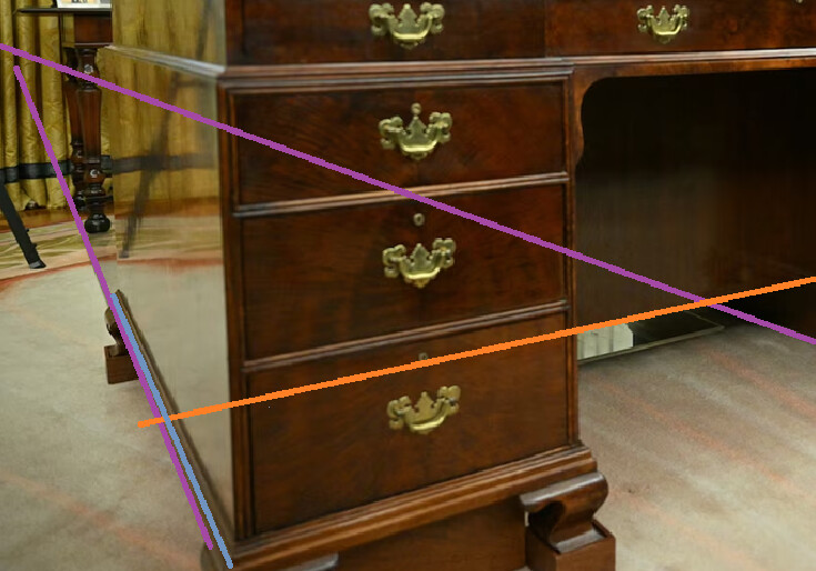 As I found out slightly later, Trump in that recent photo is sitting at a different desk, called the C&O desk, which appears to be a partner desk.