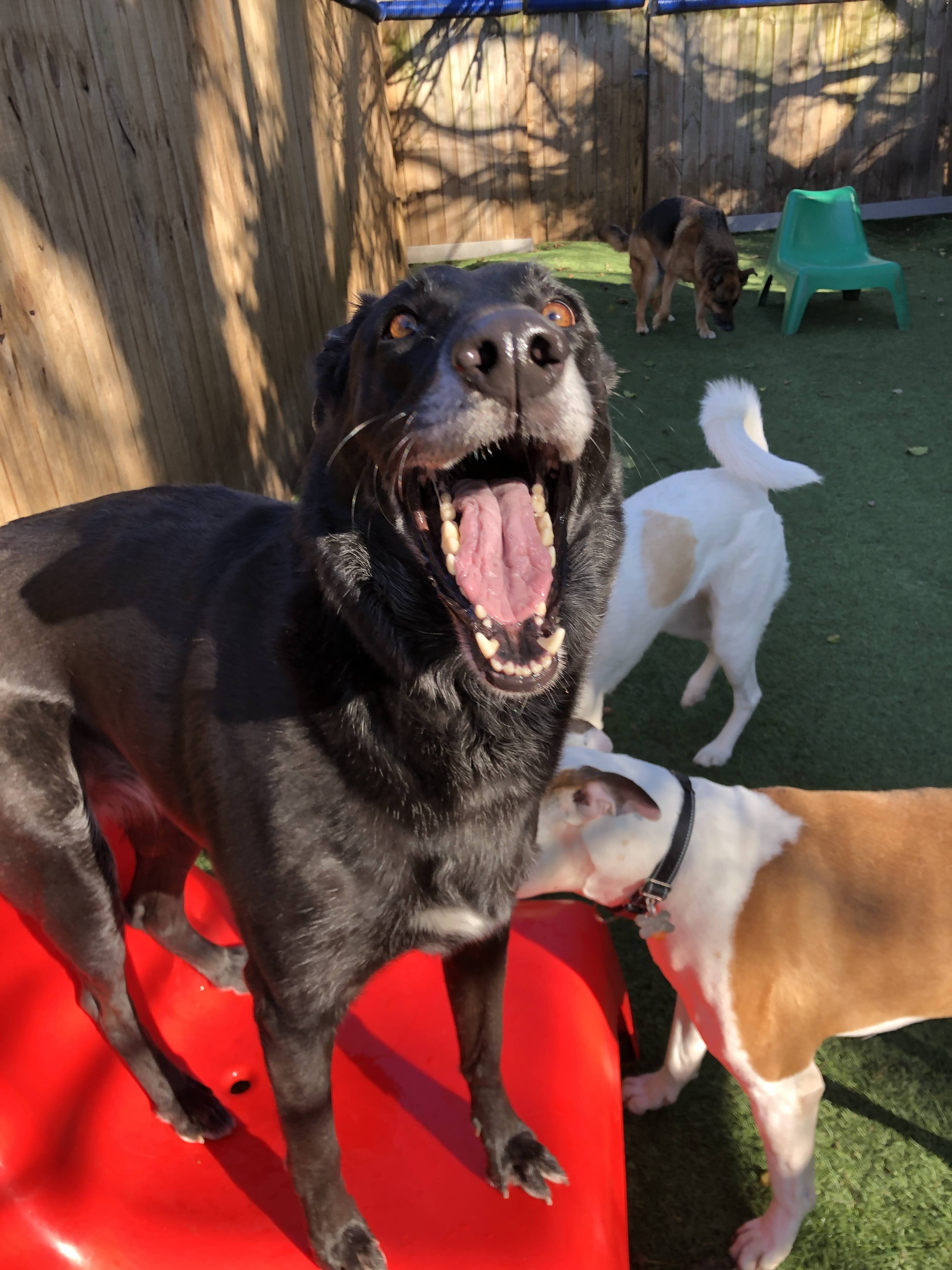 The dog is still panting from us playing fetch but she’s whining at me to play more.