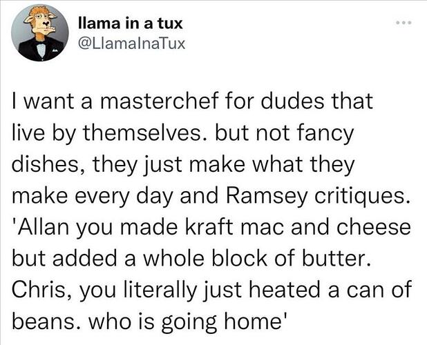 Chris, obviously. Allan’s mac & cheese with double butter would be amaaaaaazing. chef’s kiss