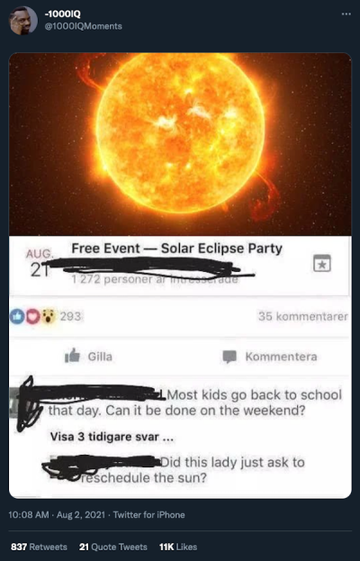 [nitpick]Reschedule the moon, right? I mean, it’s the thing that’s moving and determining the timing of the eclipse.[/nitpick]