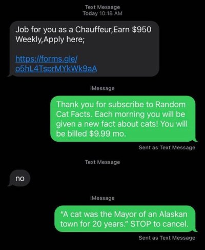 I might have to try this next time I get a spam or political text message.