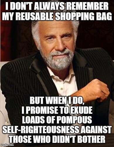 I’m like the only person in my whole farking county that seems to use a reusable bag. I’ve got several. I take a Target bag into the grocery store and vice versa sometimes.