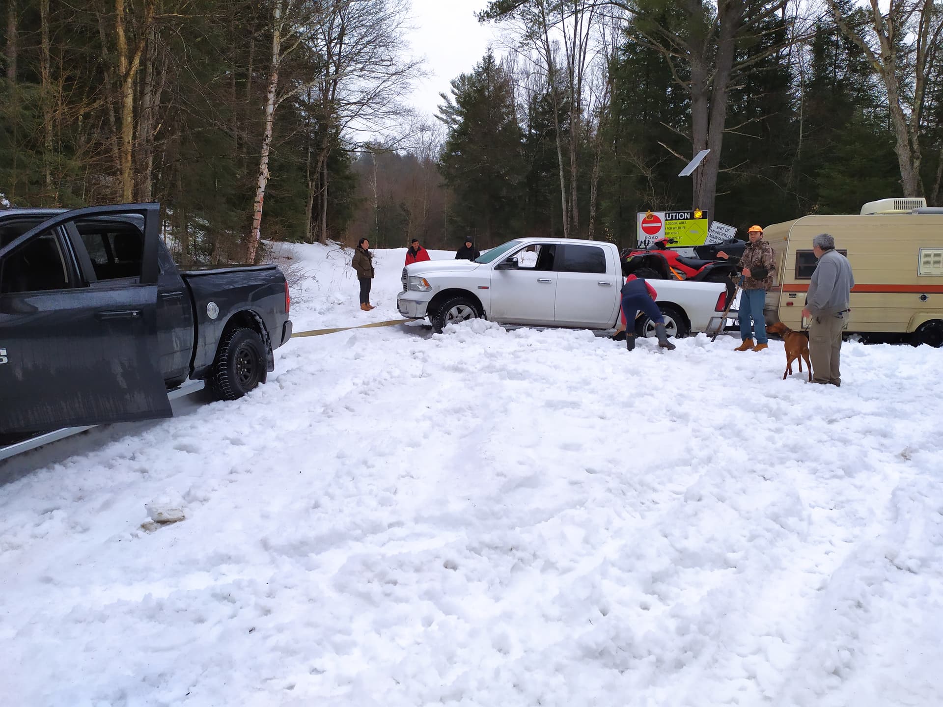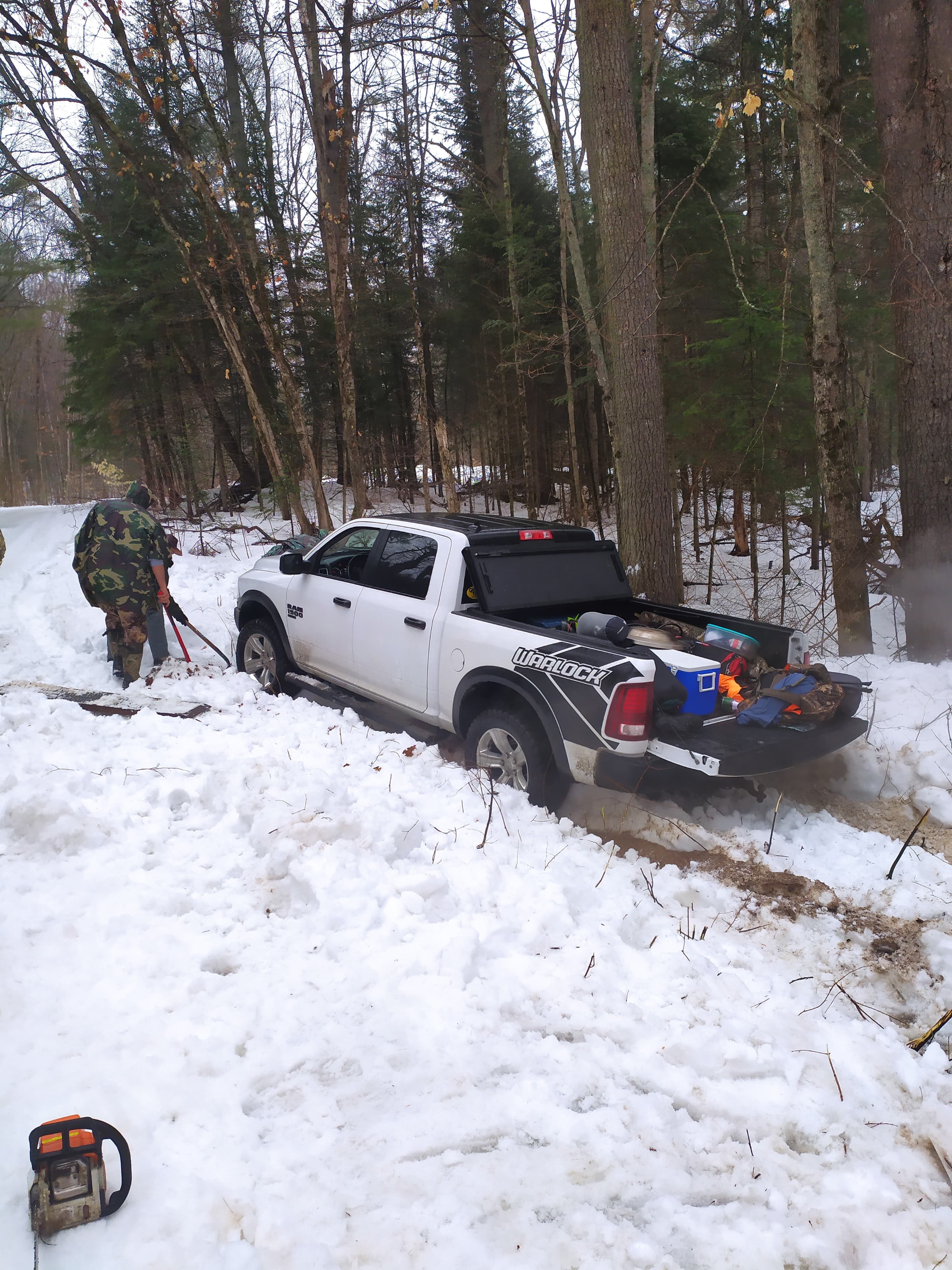 It took us an hour to get out of the bush this morning almost got stuck ourselves. So I put on new tires while we were in town which helped. We have to tow a trailer out tomorrow and not sure we would have made it with my existing tires.