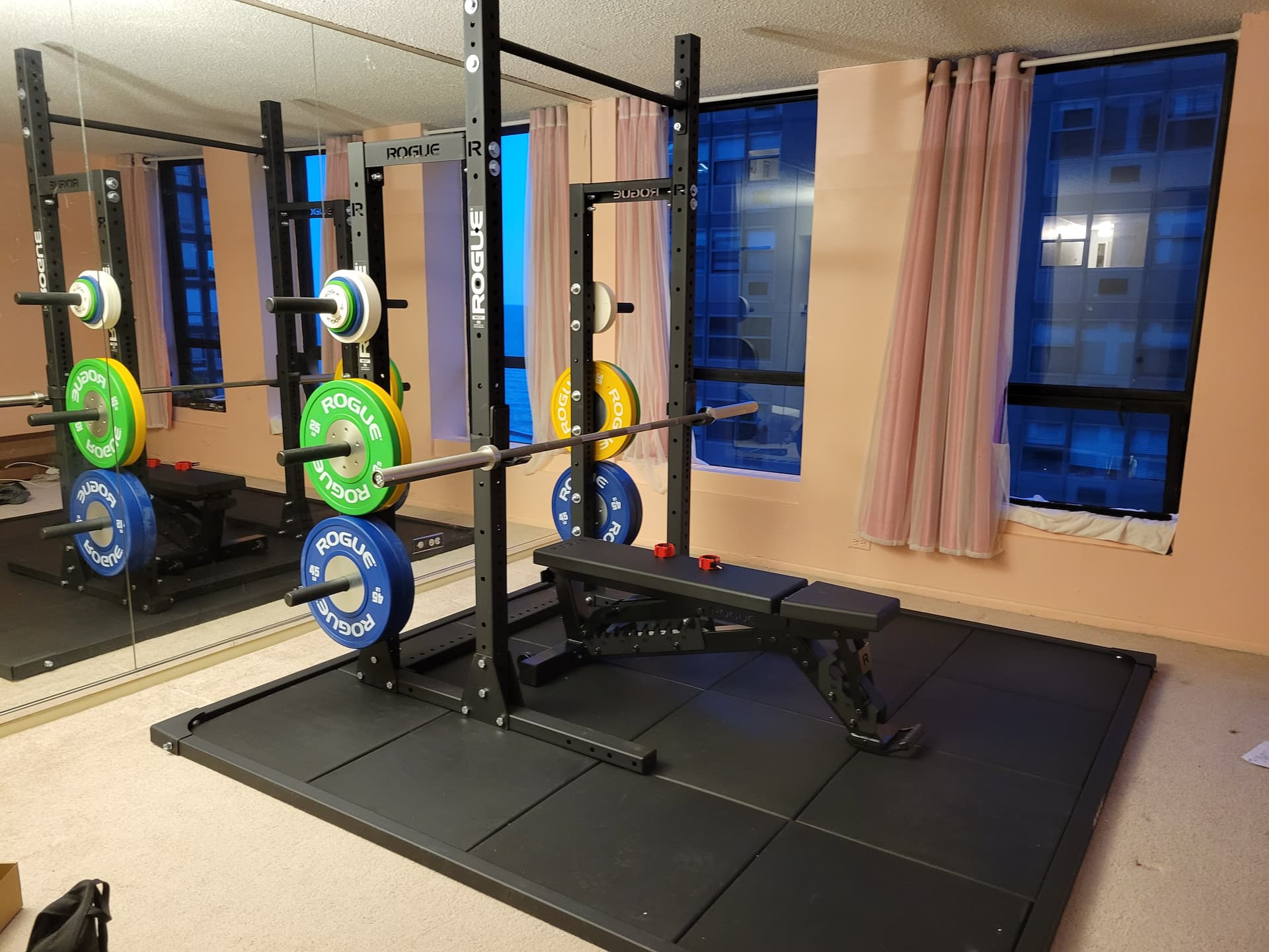 But the loudest noise was actually just putting the weights on the bar (ZZZZZZIPPPP). It’s a studio apartment that I converted to a gym so I can’t have the neighbors hearing it.