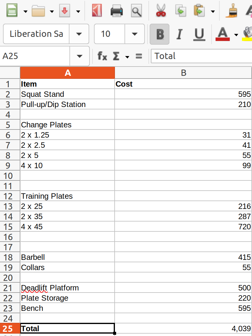 The stuff I am settled on is all cool stuff. A nice barbell + training plates.