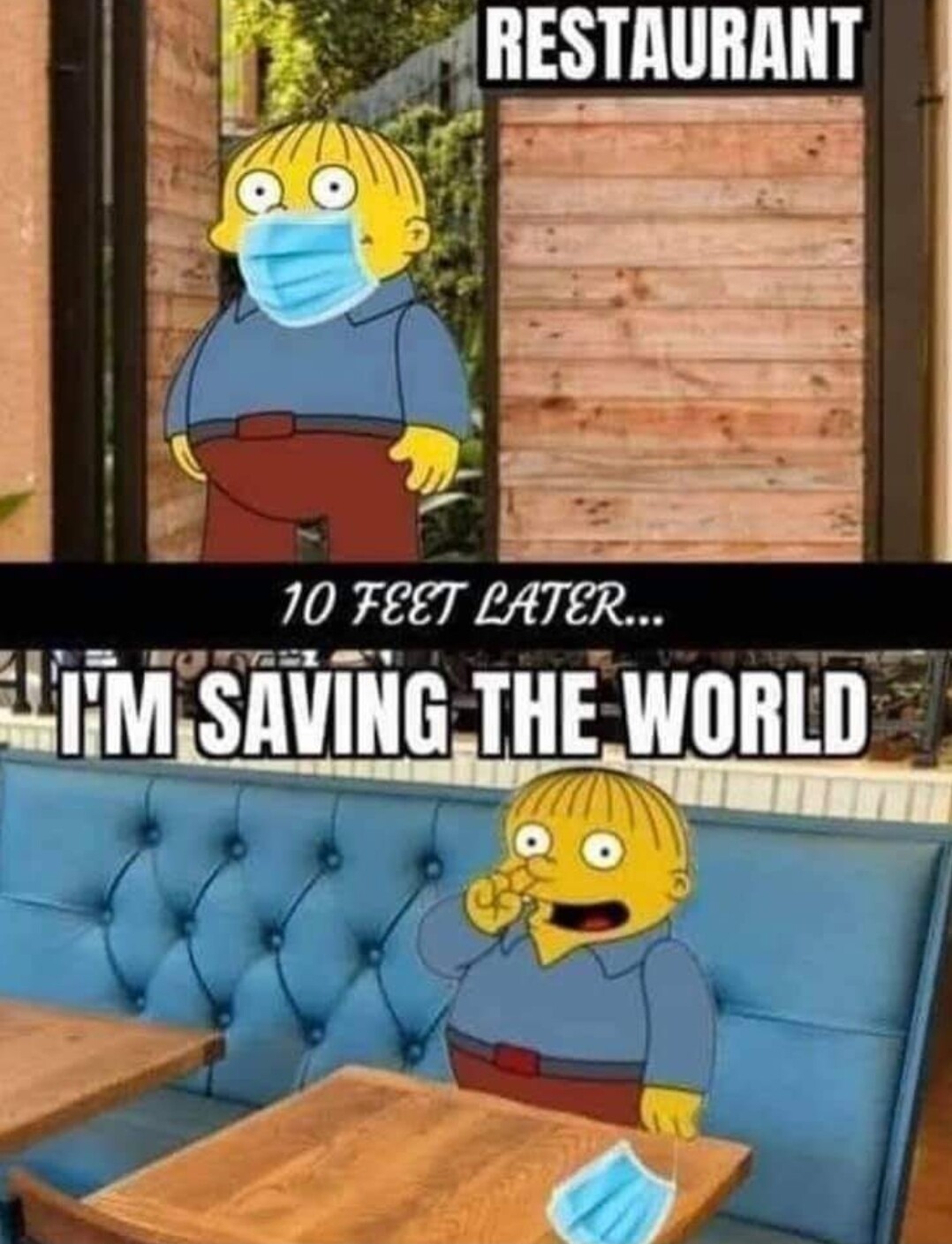 But at the movies you can munch on popcorn or snacks throughout, & everyone knows that eating/drinking keeps you safe from covid. That’s why people can unmask at restaurants.