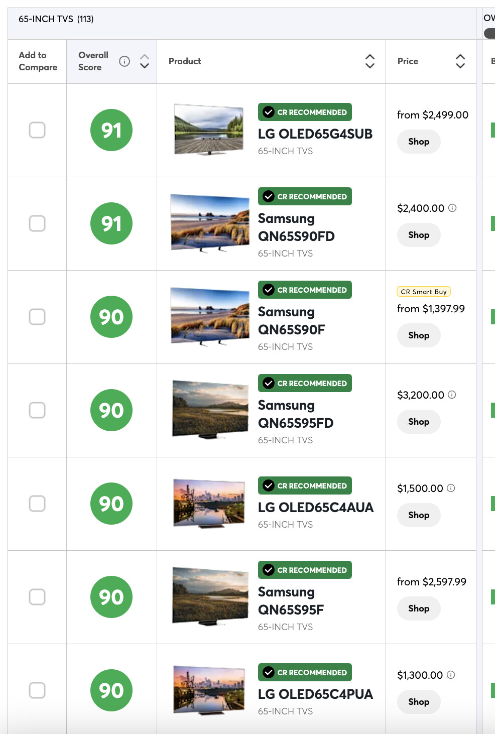 On Consumer Reports, of the 113 65 inch screens they reviewed, the highest ratings are exclusively Korean brands. The first non-Korean brand, Sony, comes in with a score of 85.