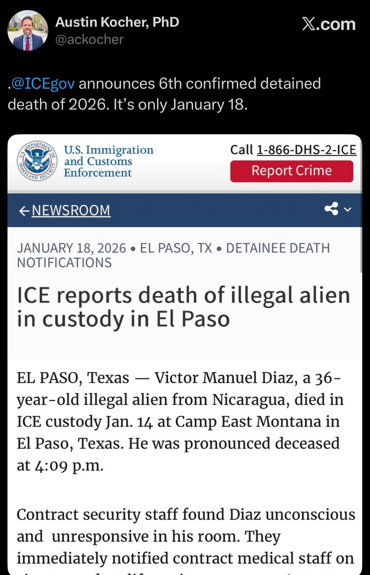 A witness told The Associated Press that Lunas Campos died after he was handcuffed, tackled by guards and placed in a chokehold until he lost consciousness. The immigrant’s family was told by the El Paso County Medical Examiner’s Office on Wednesday that a preliminary autopsy report said the death was a homicide resulting from asphyxia from chest and neck compression, according to a recording of the call reviewed by the AP.