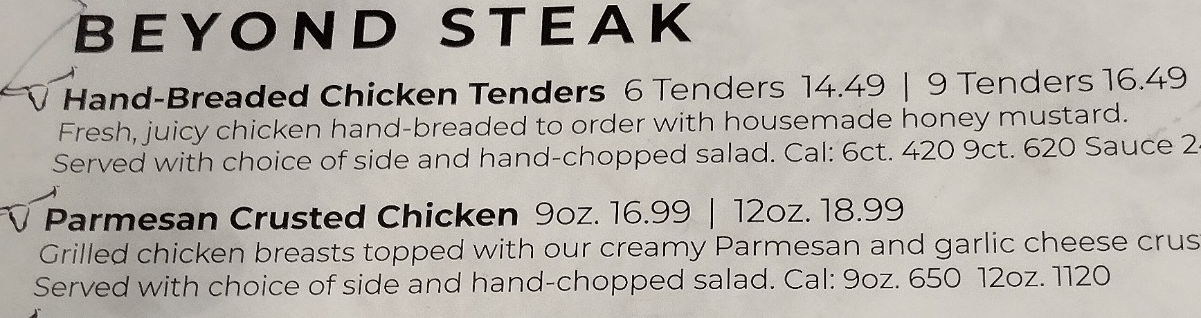I’m gonna guess that the menu is from a steak house . . . and the “beyond steak” is offerings “beyond steak” that they have (note that the two entries here are not steaks).