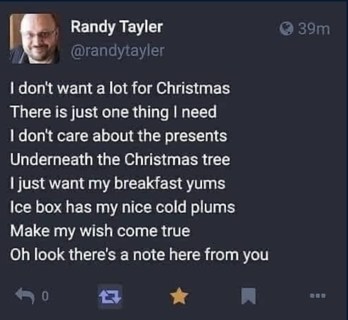 “We elves try to stick to the four main food groups: candy, candy canes, candy corn, and SYRUP.”