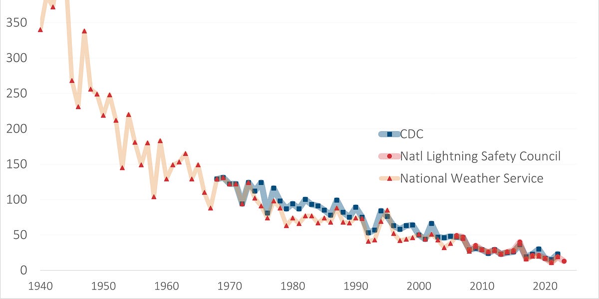 If you mean actuarial credibility to set insurance rates, well, there’s not much incentive for claiming it was a lightning strike death as opposed to cardiac arrest due to non-external causes. There are reasons that lightning strike deaths are a bit iffy - often the people who die this way are alone.