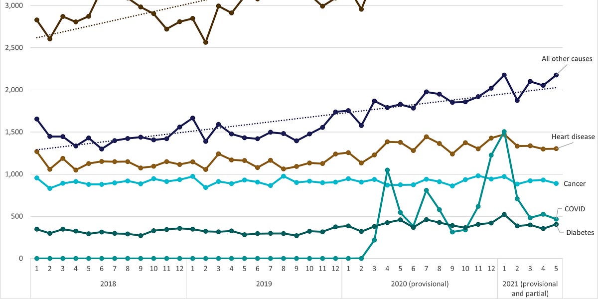 The discontinuity is the main reason, though. The CDC age group breaks changed between the three main databases I look at – there are three databases as it goes from ICD-8 to ICD-9 to ICD-10.