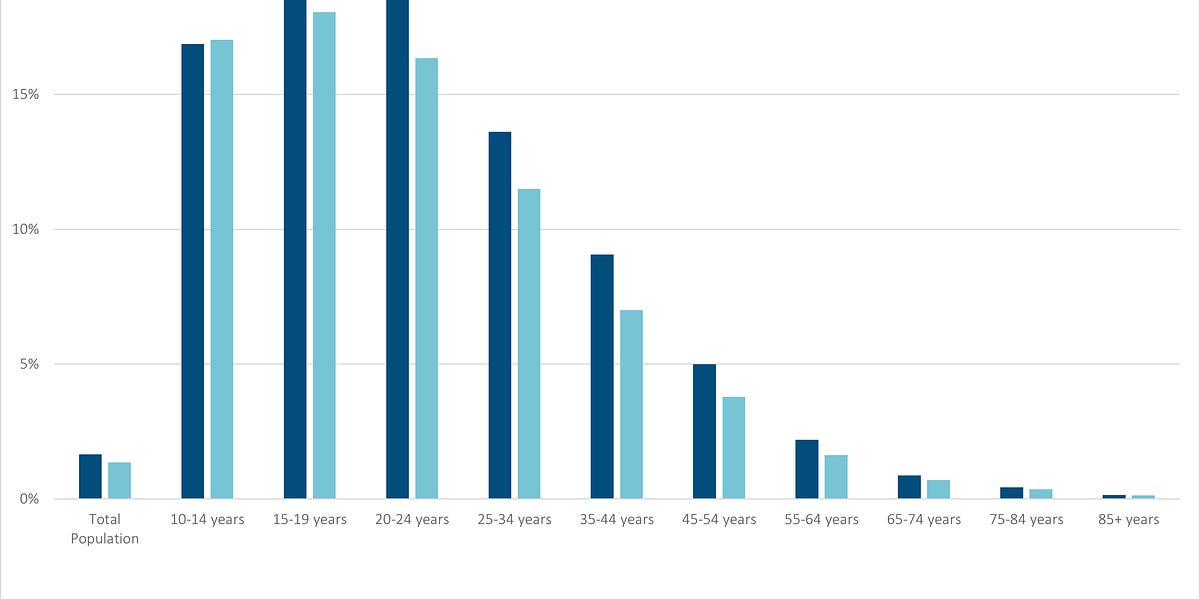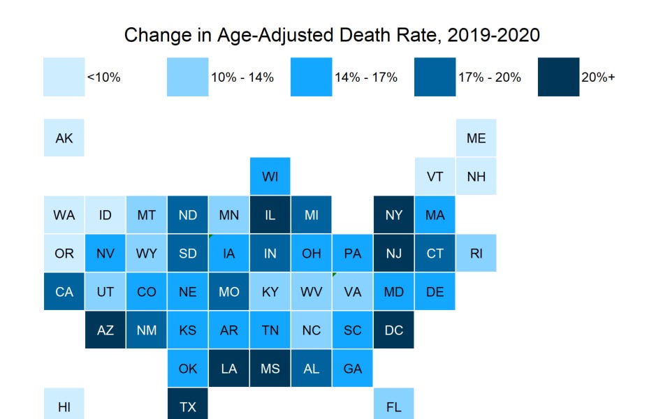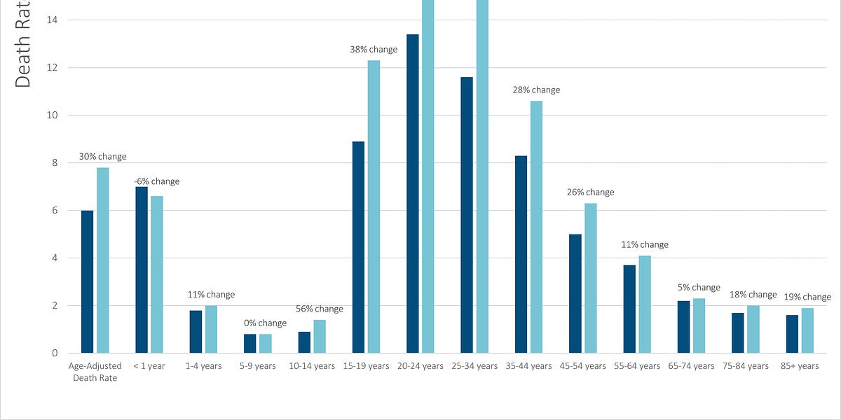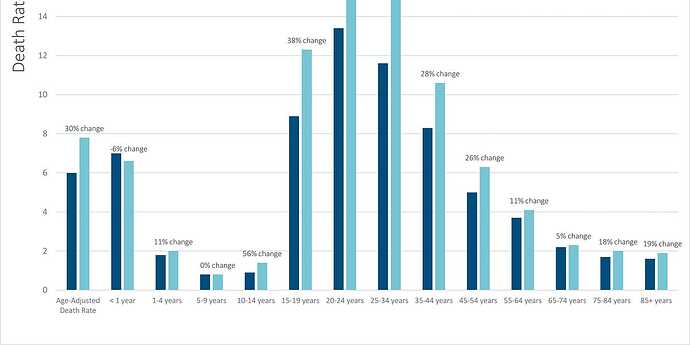Suicide trends have been bad since 2000, and that’s pretty broad across the adult age groups. For kids, the bad trend started more recently, it looks like, but still preceded the pandemic. That said, it got worse for the younger folks in 2020, and I really don’t want to make comments about the 2021 data yet, because I think it’s too inconclusive thus far.