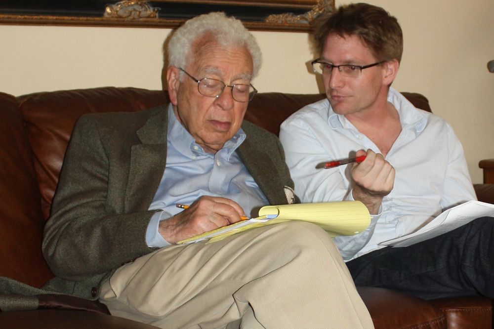Ole Peters, right, with Murray Gell-Mann at Santa Fe Institute in 2011