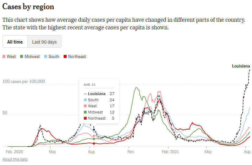 This doesnāt get into masks but more into highly vaccinated v lower vaccinated areas. I have a bad feeling this is going to get worse before it gets better, and possibly much worse in areas with low vaccination rates.