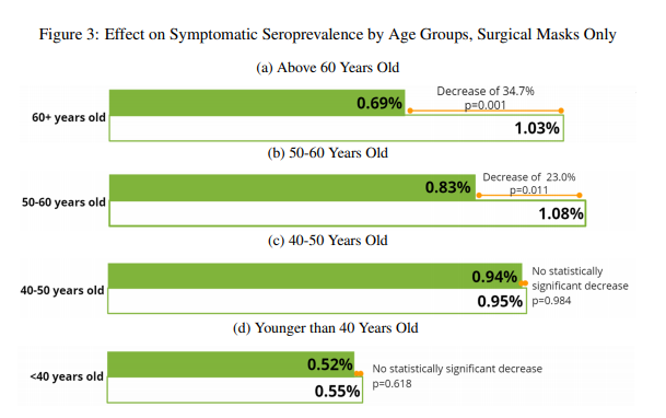 Why in the world did masks reduce COVID for 50+ year olds, but not for anyone younger than 50 (page 28)? Behavior differences? Like did under 50 year olds not wear masks or is it something with the way it spreads?