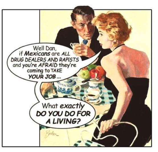 Yeah, a friend had posted this the other day and it feels about right: “It depresses the hell out of me that the people I grew up with or I am related to have turned into people that I wouldn’t tell where Anne Frank was hiding.”