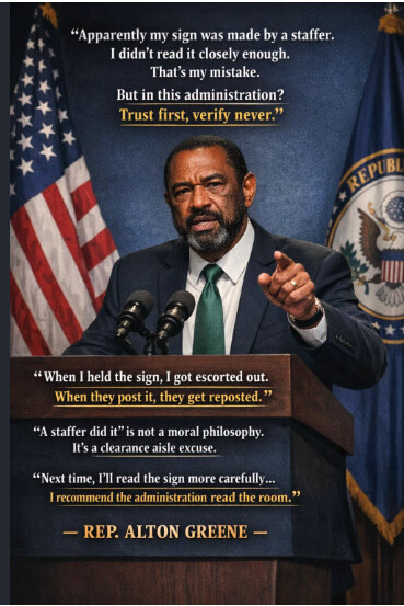 First: he was escorted out of the State of the Union speech for an anti-Trump sign