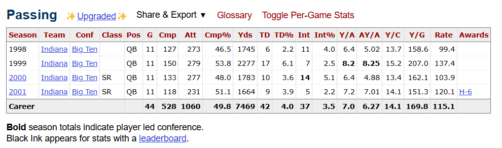 Ok next dumb question: where it says “Rate”… uh… does that mean “passer rating”?