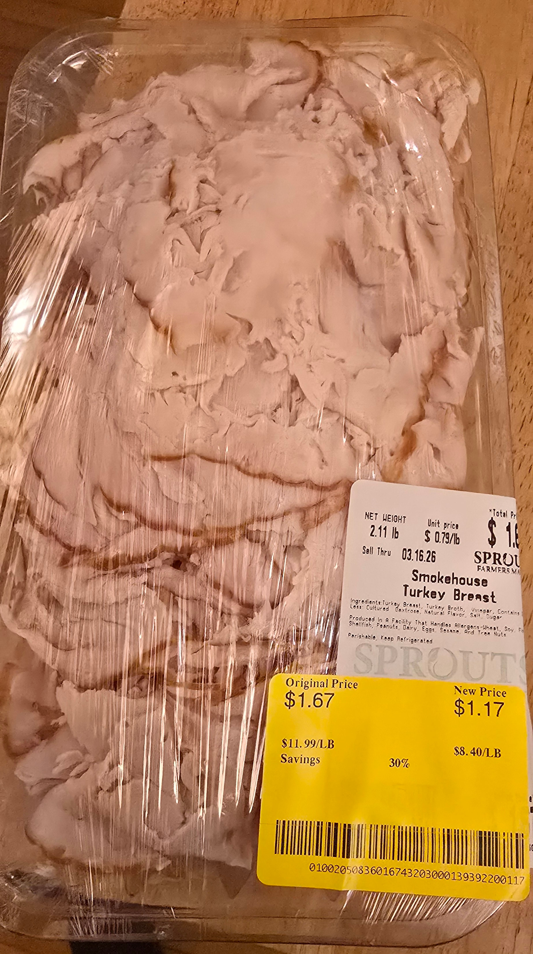 Saw this at the store today. Itâs got a sell by date of today so they marked it down, but seems like someone made a mistake. Two plus pounds of sliced smoked turkey for a little over a dollar?