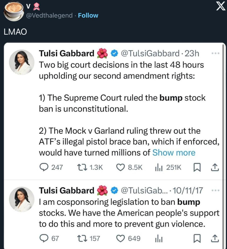 Note this was before and after Tulsi left the Democratic Party for being too “woke” and joined Fox News as a paid contributor and endorsed multiple Republicans.