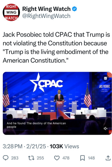 That’s not conjecture on my part. Various strategists in Trump’s orbit have literally been saying that this is the strategy since before the election. Although it may be phrased more politely, it’s in the Project 25 tome. None of this should be a surprise, aside perhaps from the fact that they’re actually pulling it off.