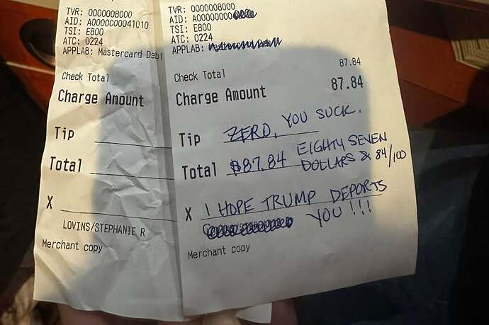 Ms. Lovins apparently tried to scribble her name off of the copy of the receipt on which she left a racist message, because we all know if you strike through a copy of a receipt then all its information is lost forever.